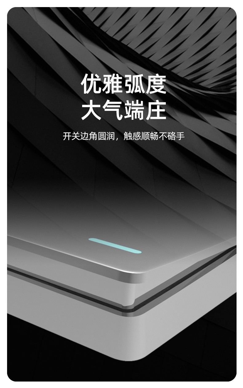E6系列開關(guān)插座簡約時尚的大板設(shè)計,配合著媲美手機(jī)外觀的圓潤弧度,觸感順暢,不硌手,側(cè)面設(shè)計宛如超跑的車身線條,細(xì)節(jié)之處盡顯品牌的匠心;E6系列打造出一款具有大家風(fēng)范的簡約時尚的開關(guān)插座,帶給你不一樣的墻上美學(xué)。